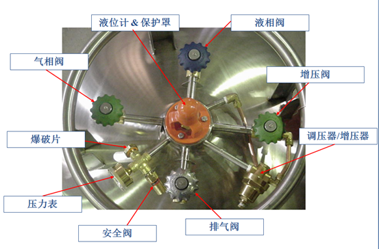 然后加入液氮后測重,一立升液氮重為0.8公斤加上空罐的重量得出滿罐時的重量,減去使用過后現(xiàn)有秤重,就是應補充的的容量。可以用專用的液位尺測液位,另一種簡便的方法是找一根干凈的木棒插入液氮內數(shù)秒鐘,將木棒迅速取出暴露在空氣中,插入液氮的部份因溫度低而結成白霜,很易容檢測罐內液氮的存量。